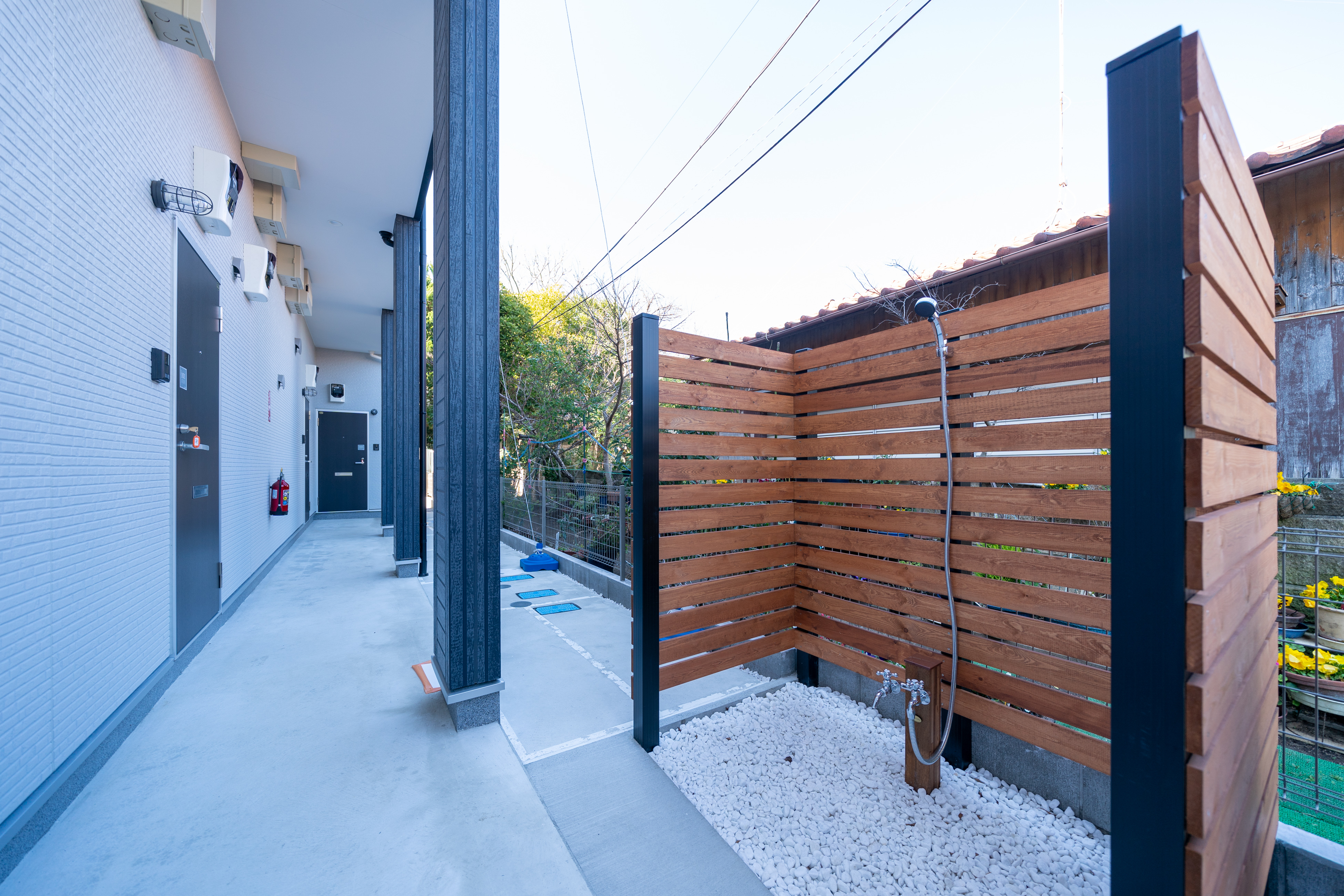 入居者専用屋外シャワー サーフィンから帰ったら お部屋の中を汚さずに シャワーが浴びられます