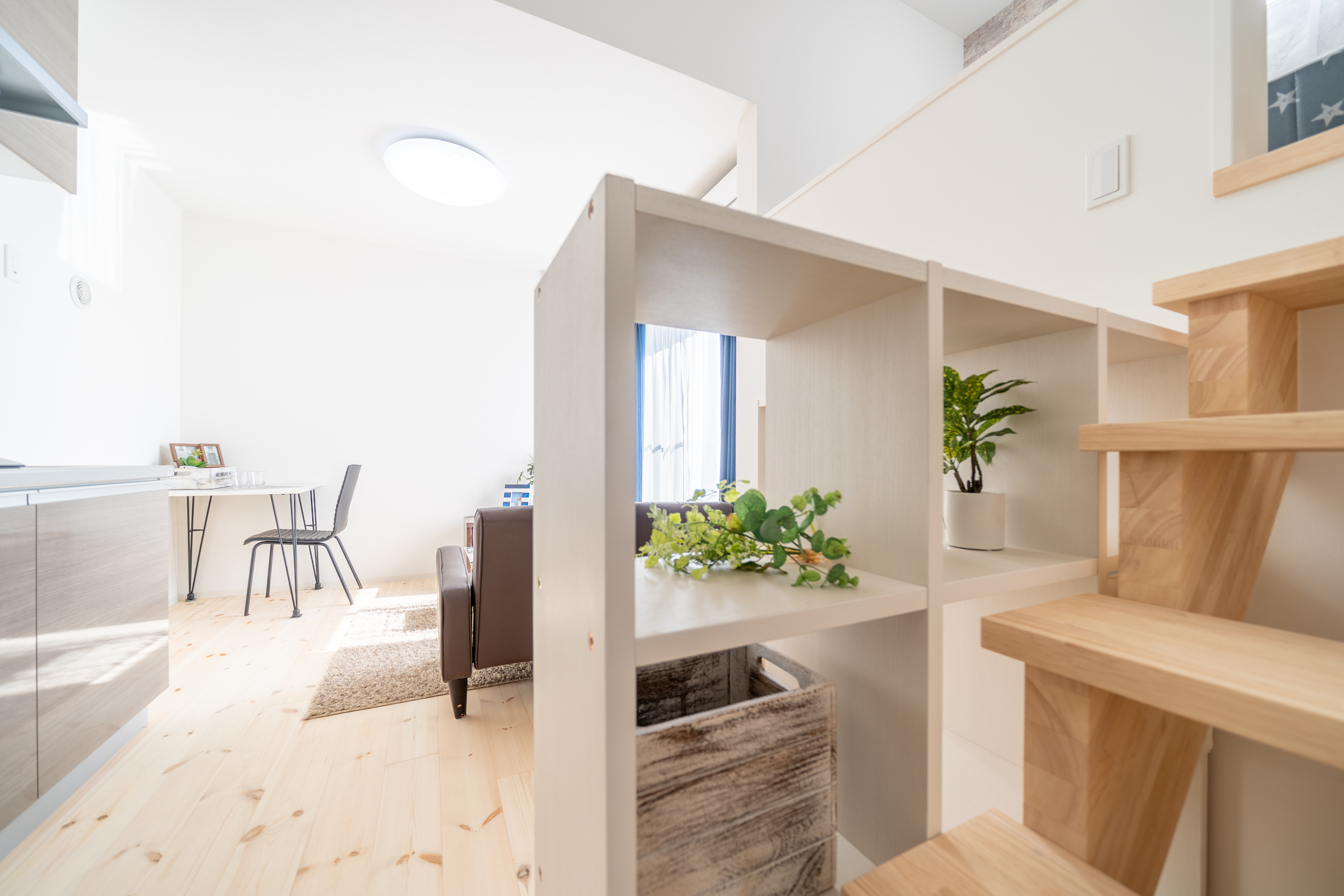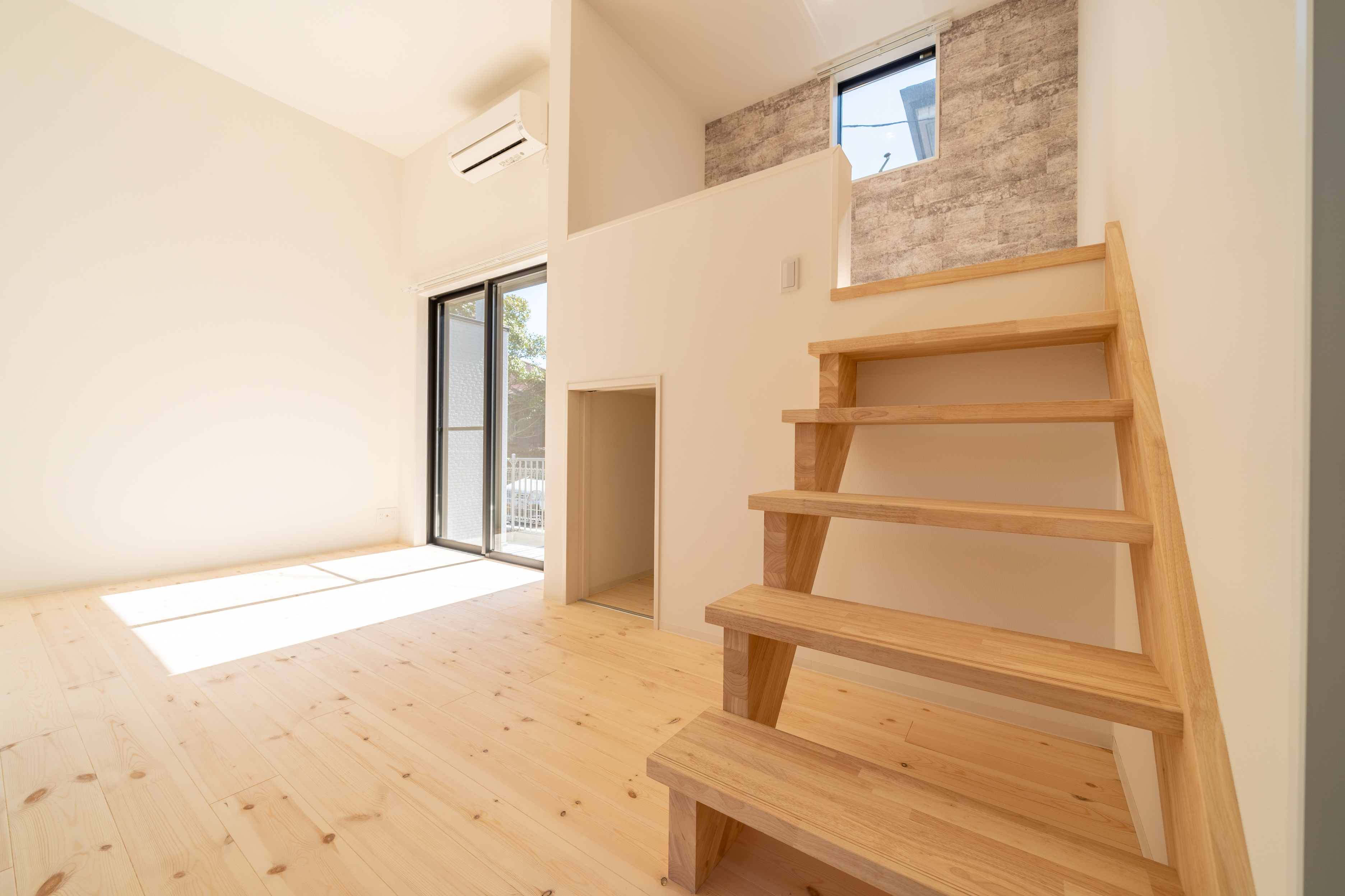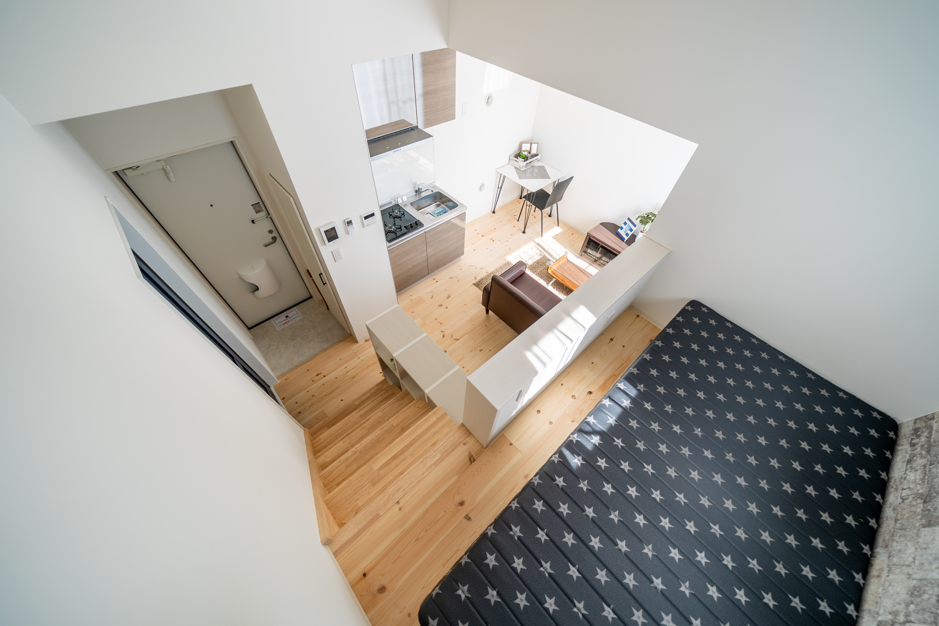 中2階になっていて1Rでも リビングと寝るスペースを 分けることが出来ます