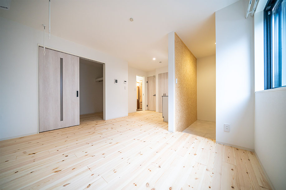 1階のお部屋は広々とした玄関が特徴。 自転車を中にしまう事が出来ます
