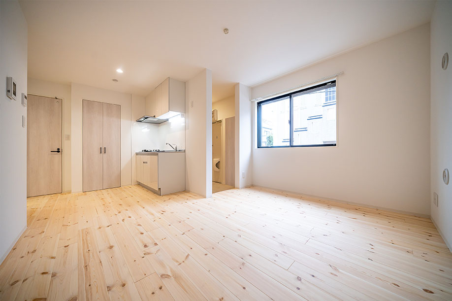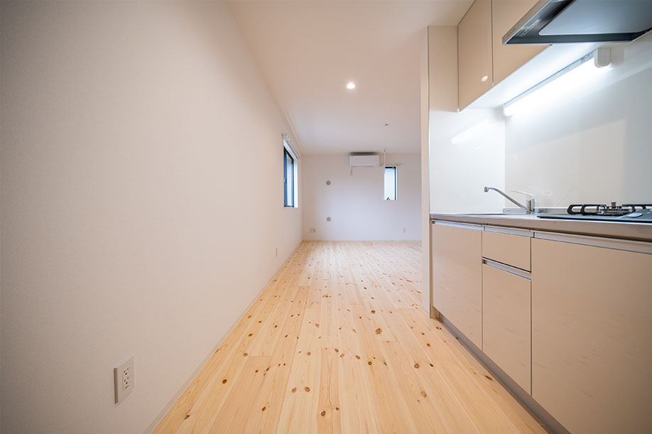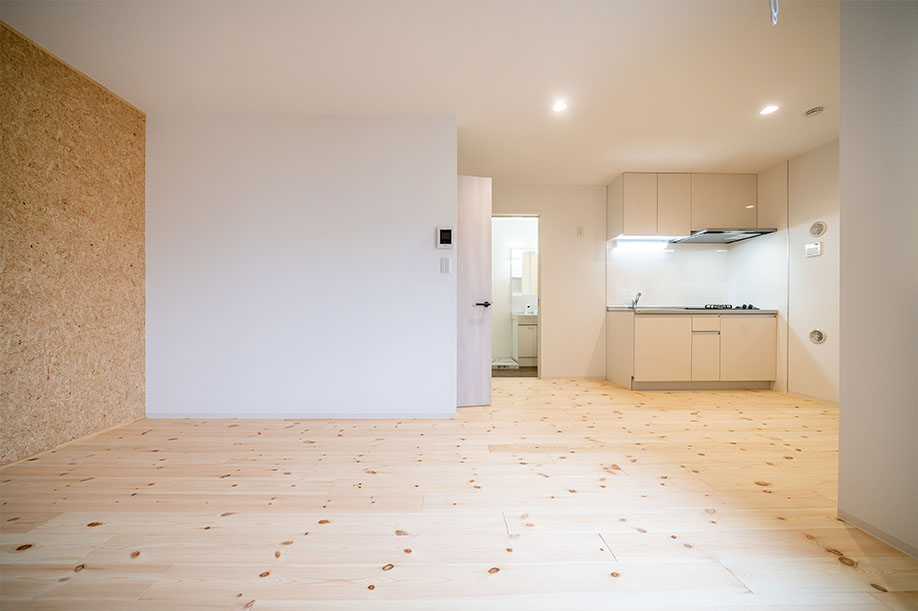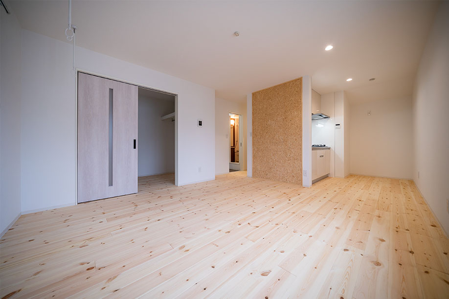 入居者が自由に棚やフックなどを 付けられるDIYスペース