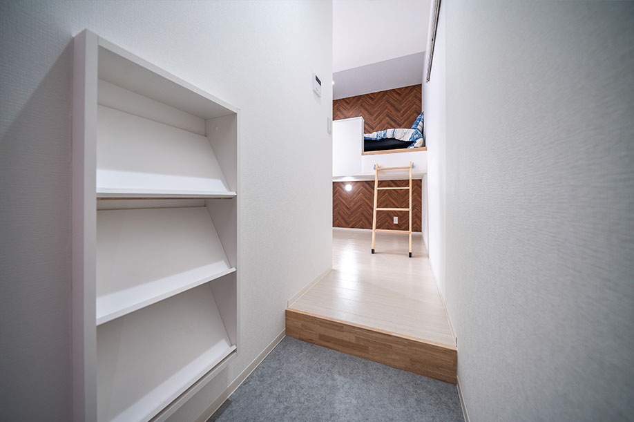 棚などを置いてオシャレに収納ができます