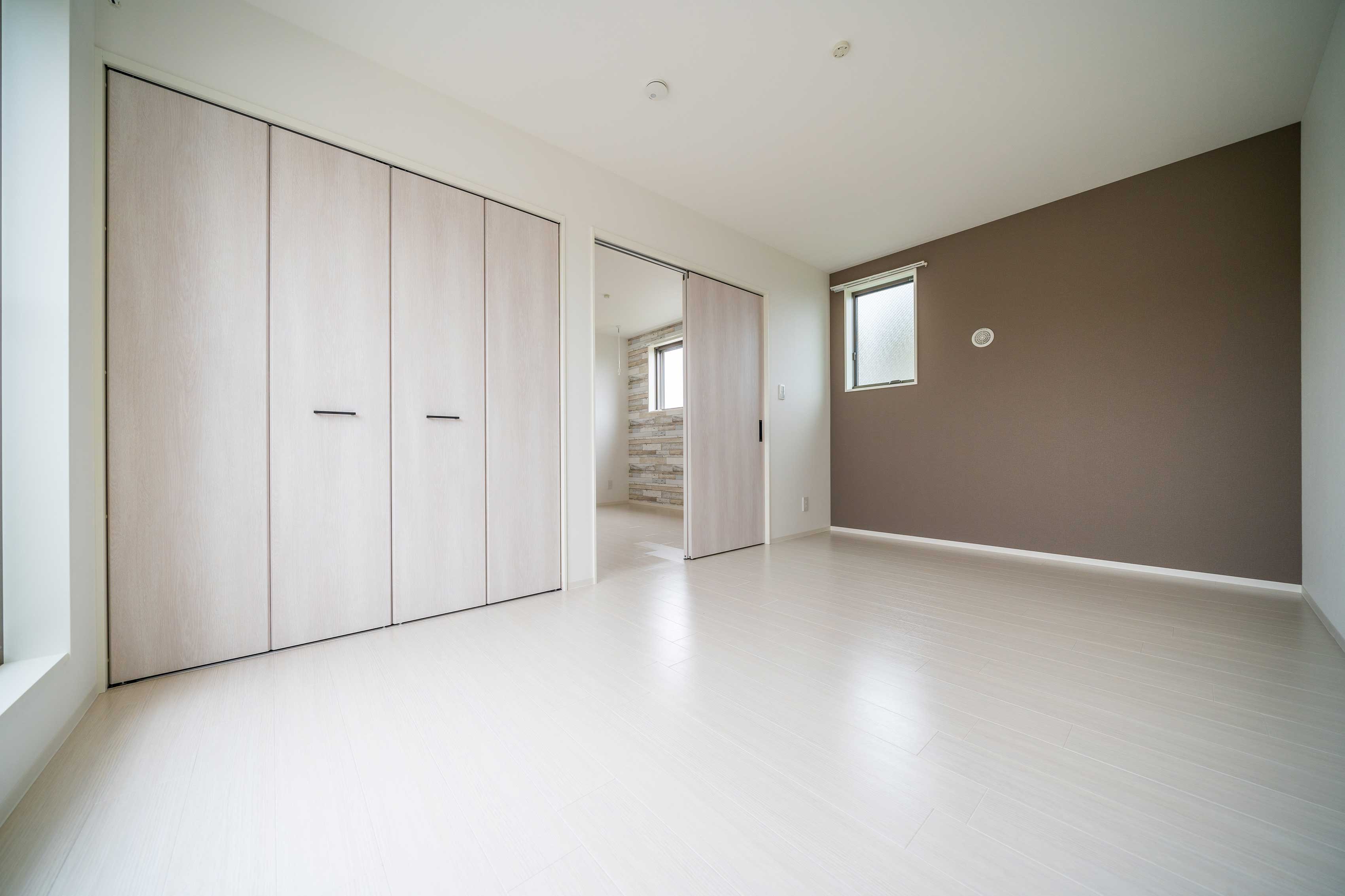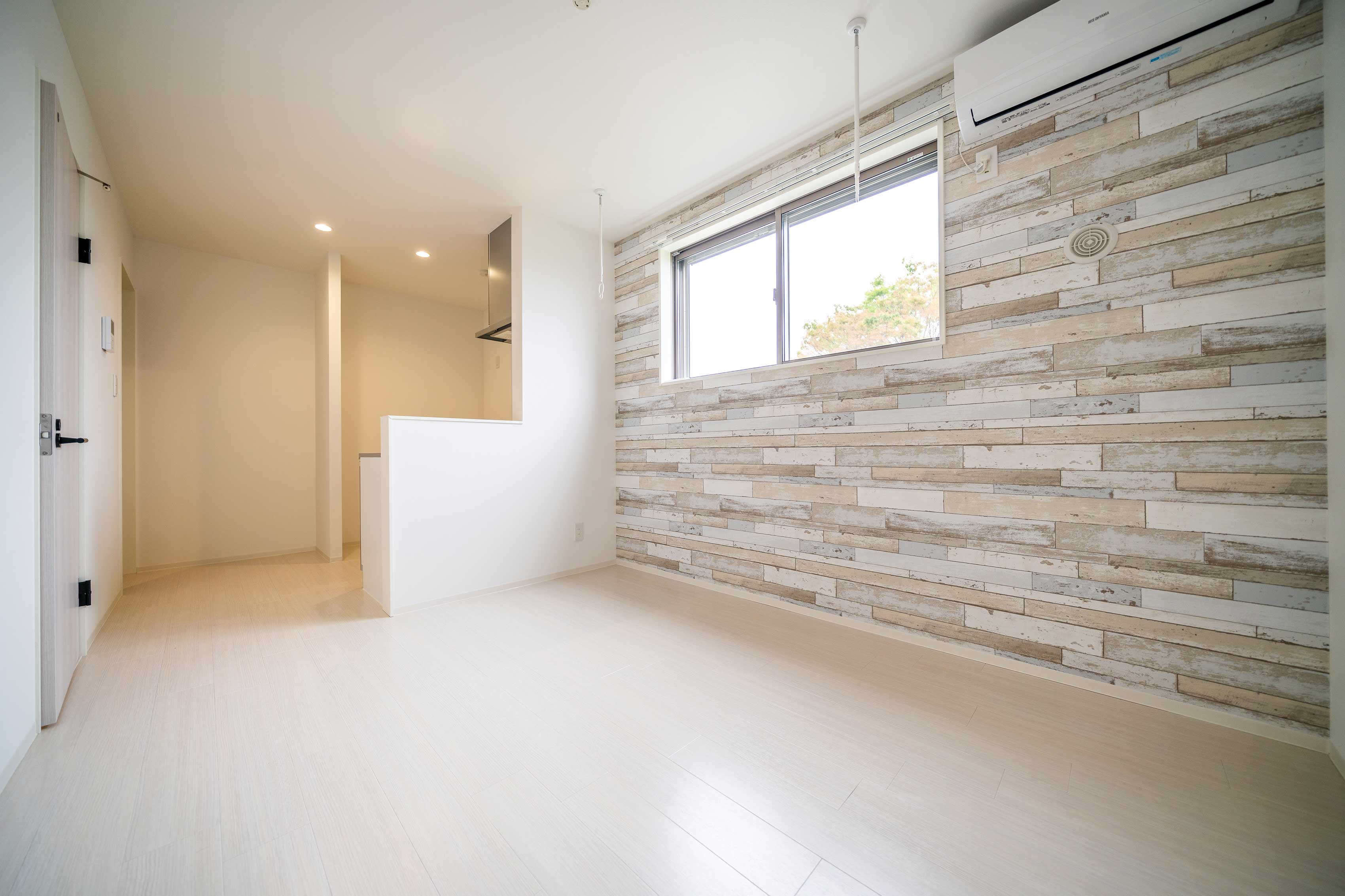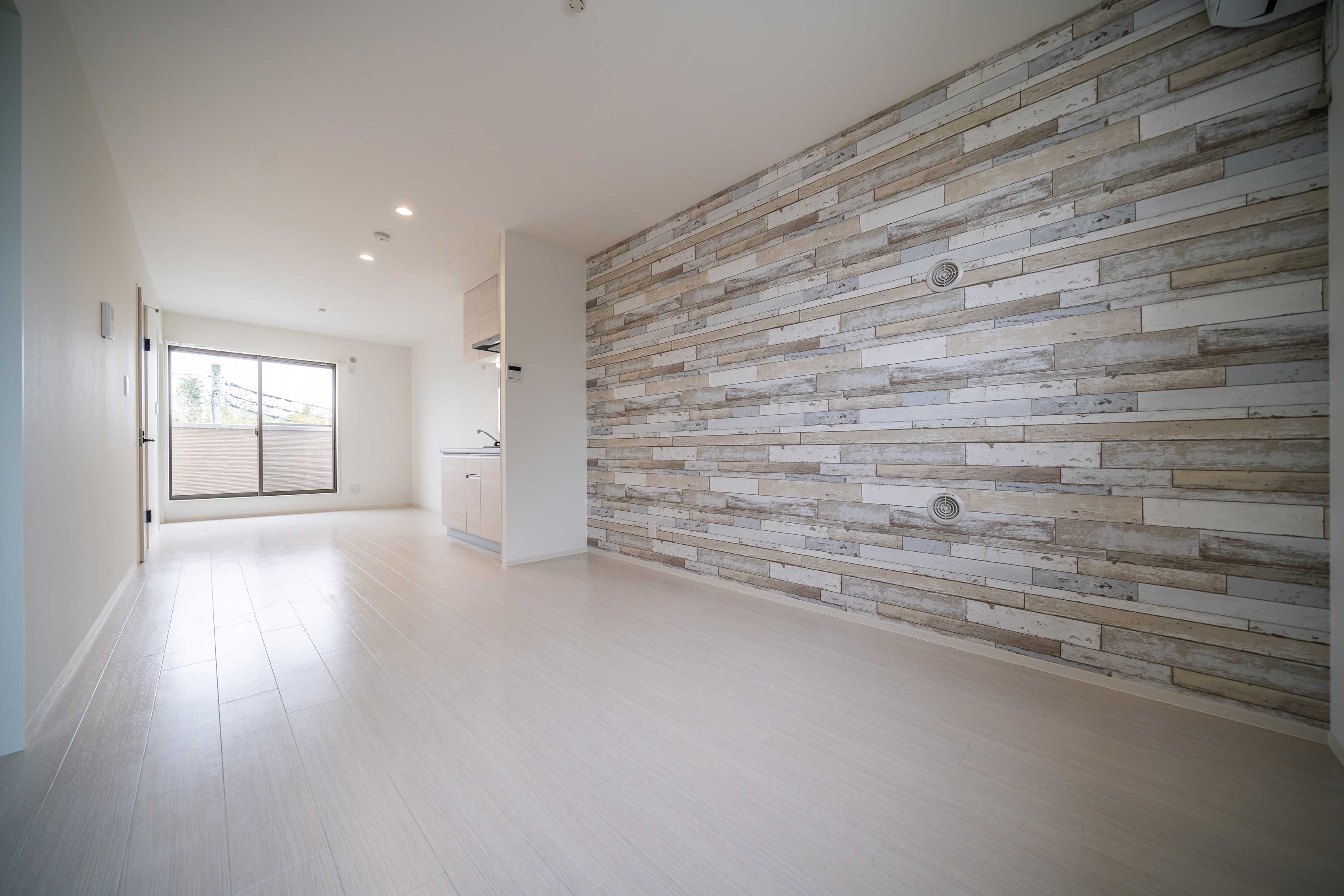 石目調のアクセントクロスで シンプルモダンな雰囲気を演出 落ち着きのある空間です