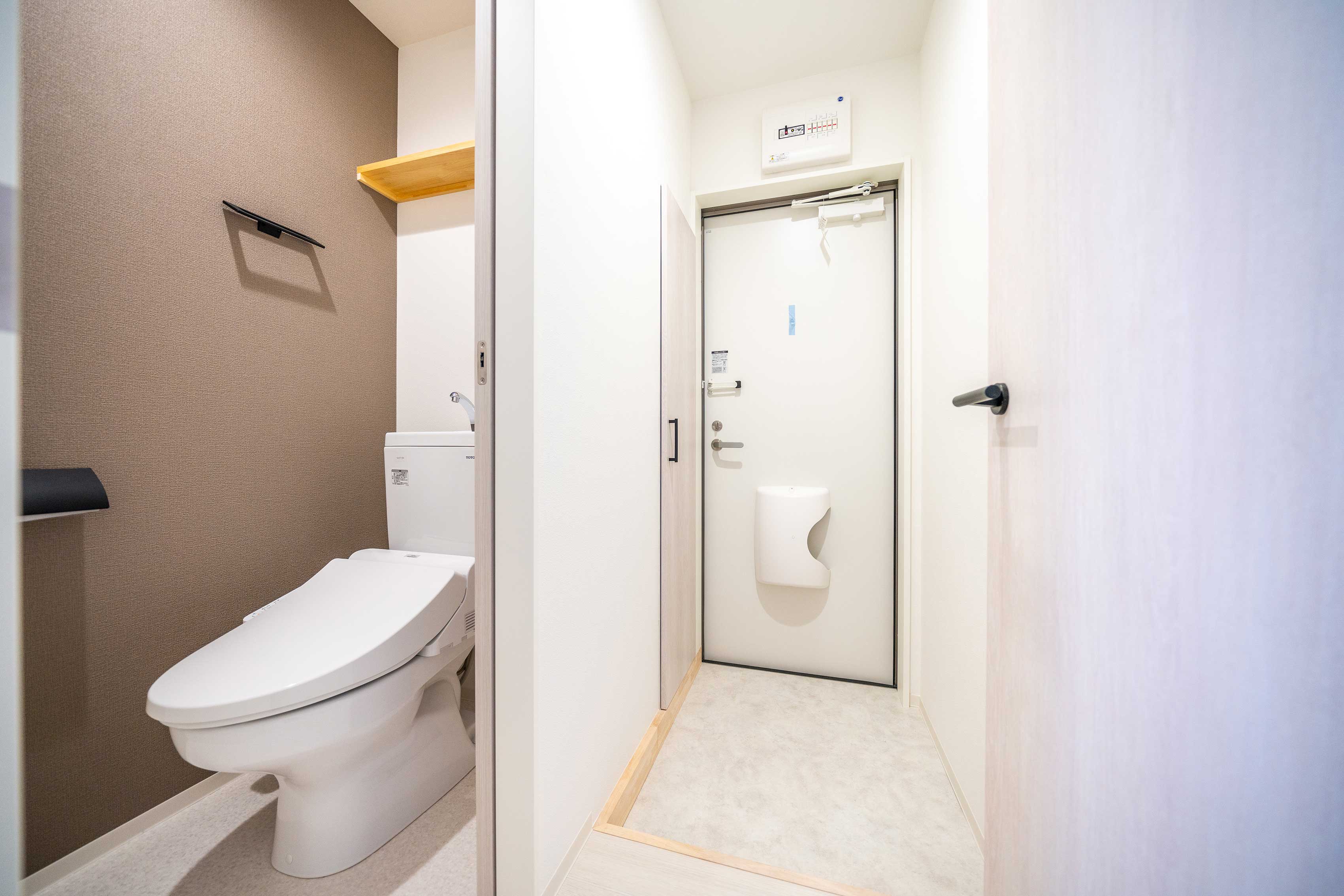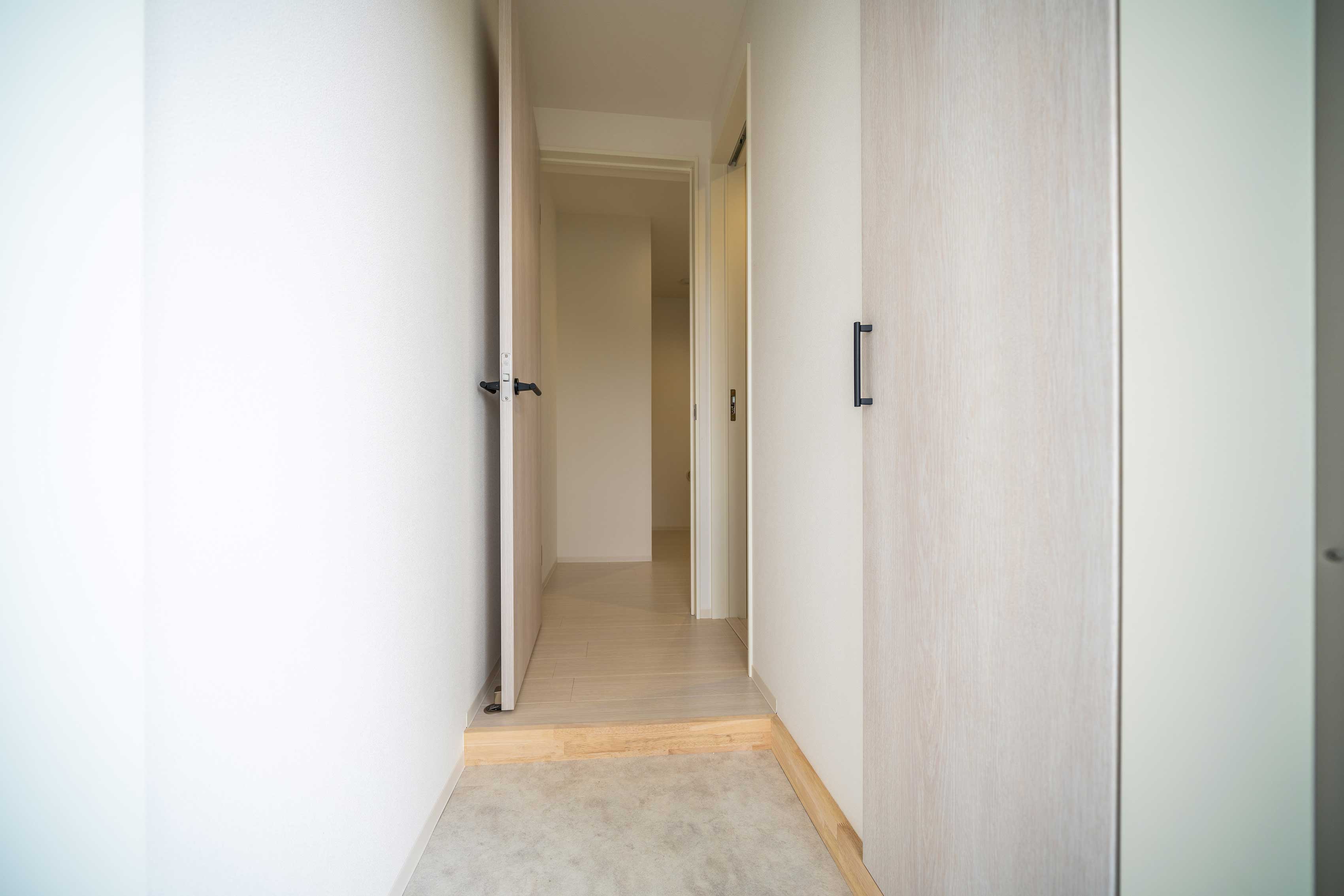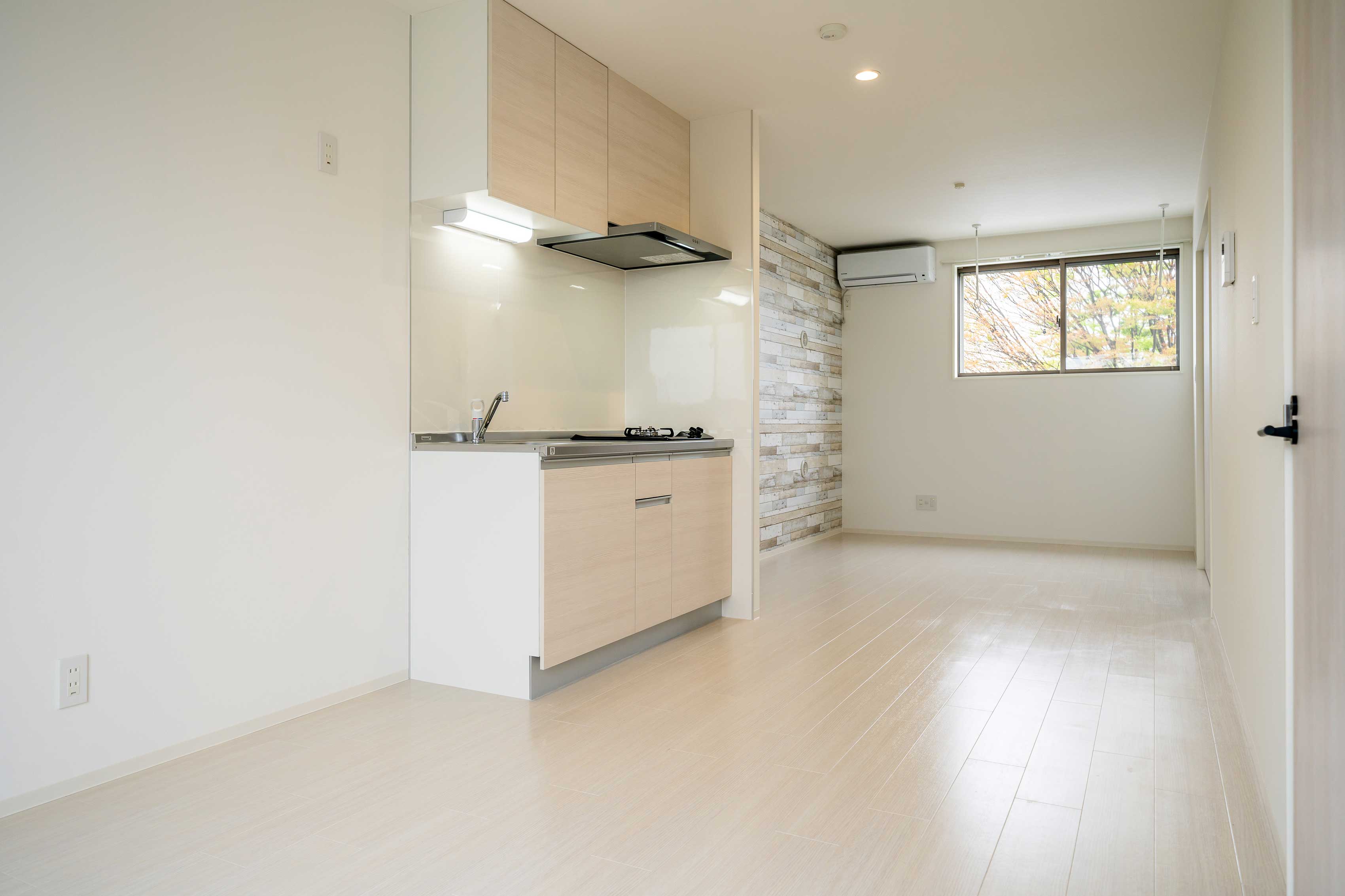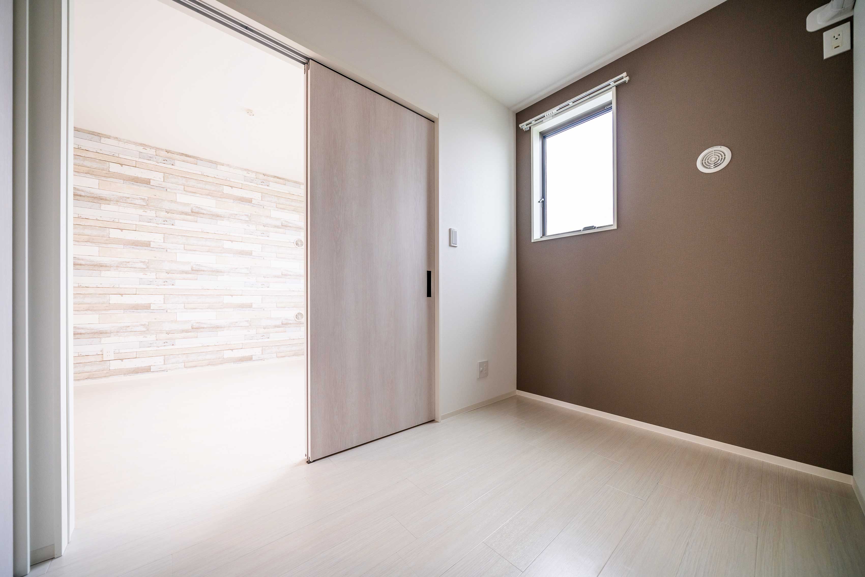 石目調のアクセントクロスで シンプルモダンな雰囲気を演出 落ち着きのある空間です