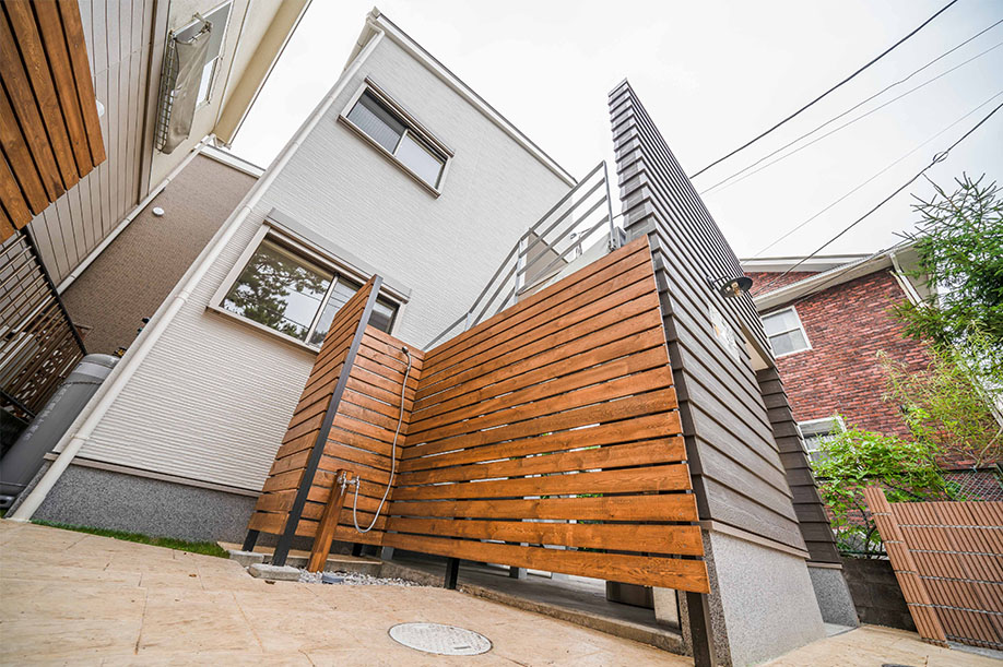 マリンスポーツ後、お部屋に入る前に 汚れた体を洗い流せる 入居者専用のシャワーブース