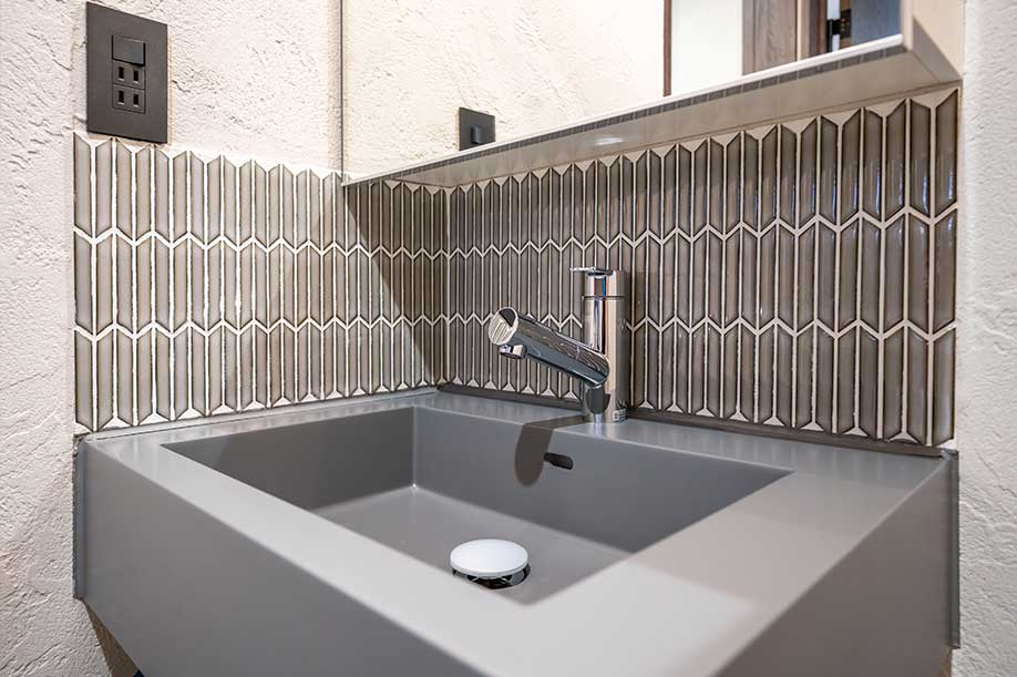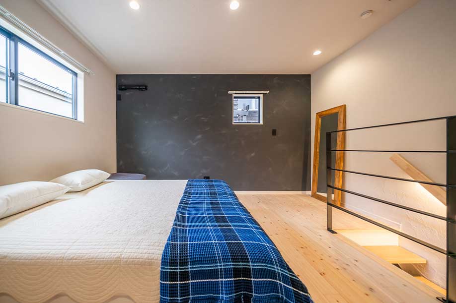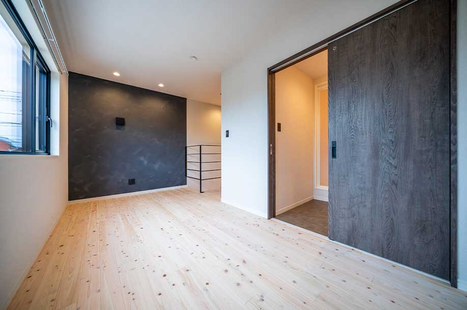 ジョリパットで仕上げた アクセント壁 水墨仕上で 重厚感のある空間に