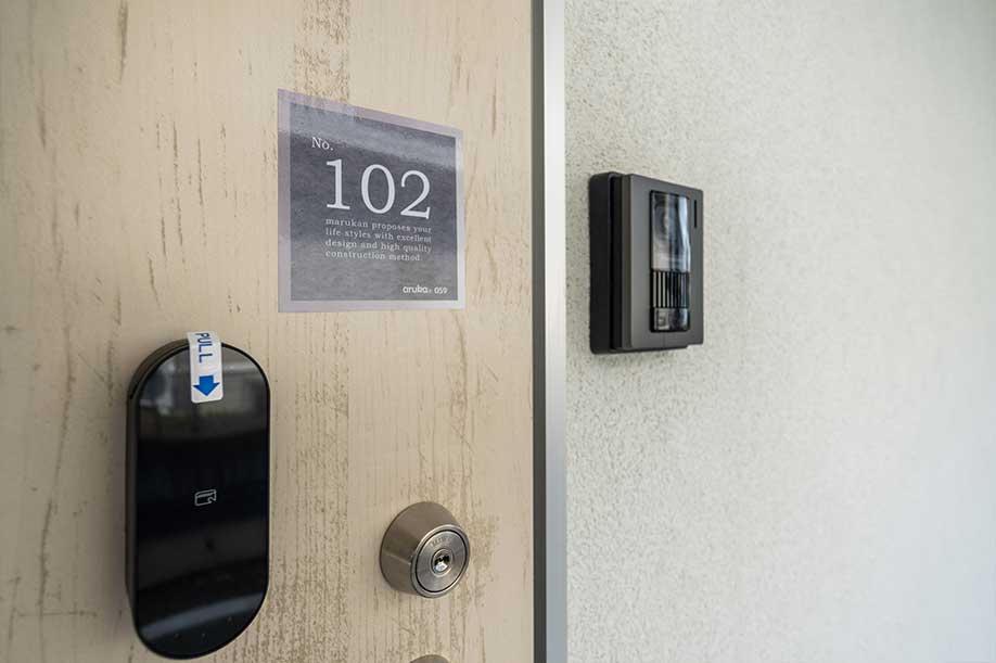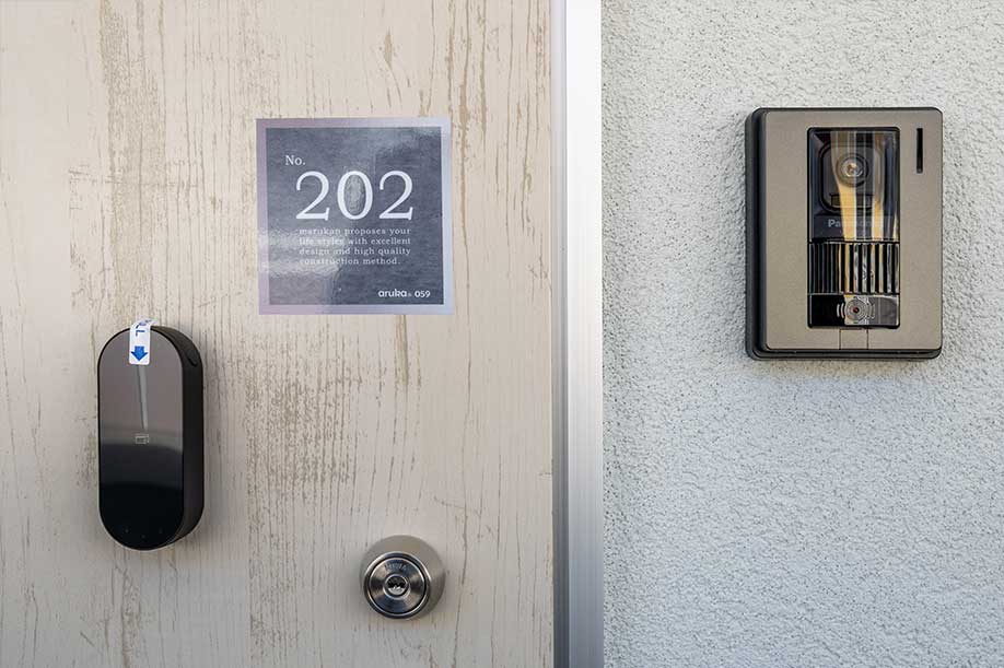 玄関扉には自動ロックがついているので 鍵の締め忘れ防止になり 女性でも安心です