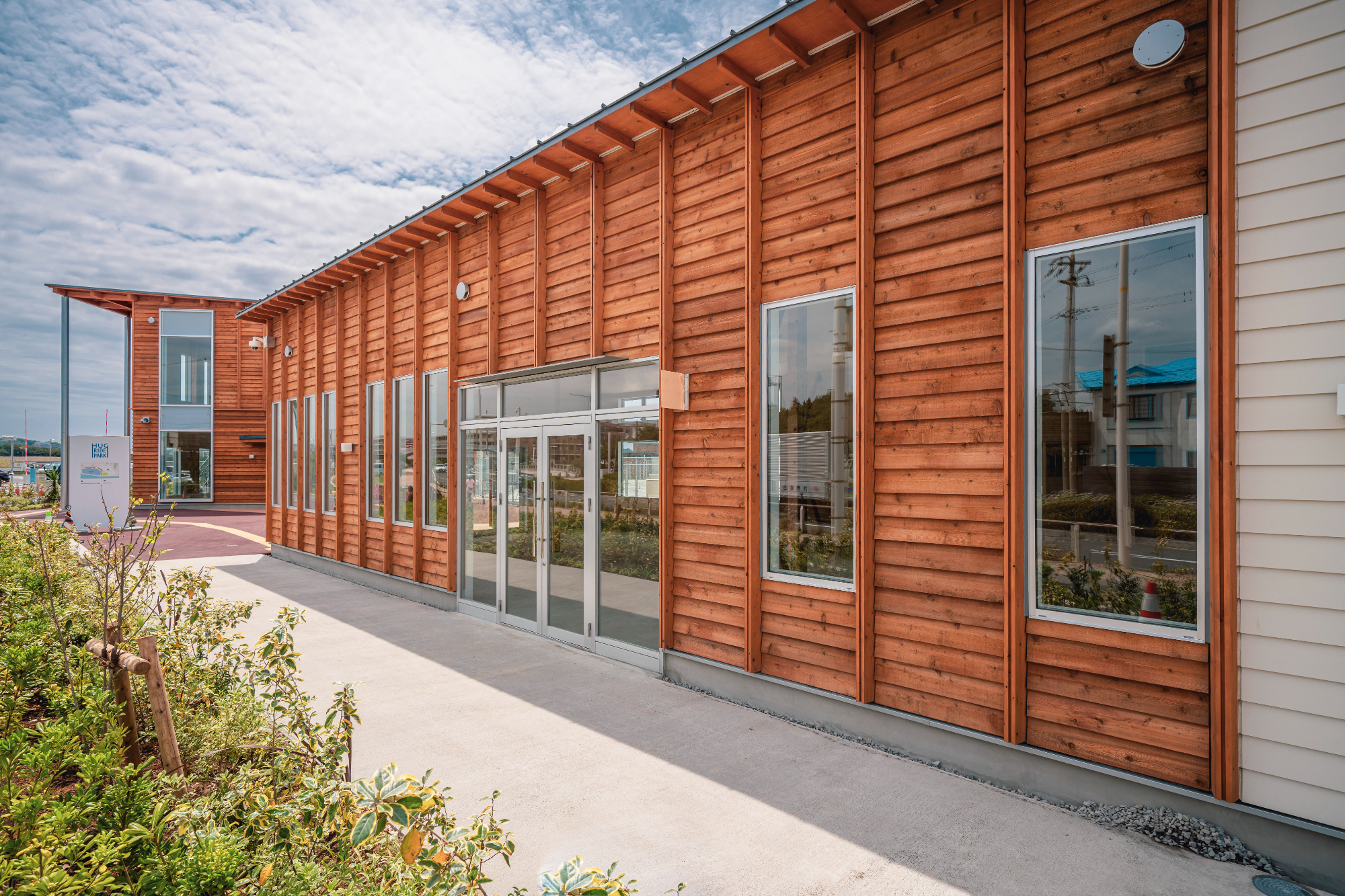 4棟で構成される木造建物には一部に神奈川県産の木を使用